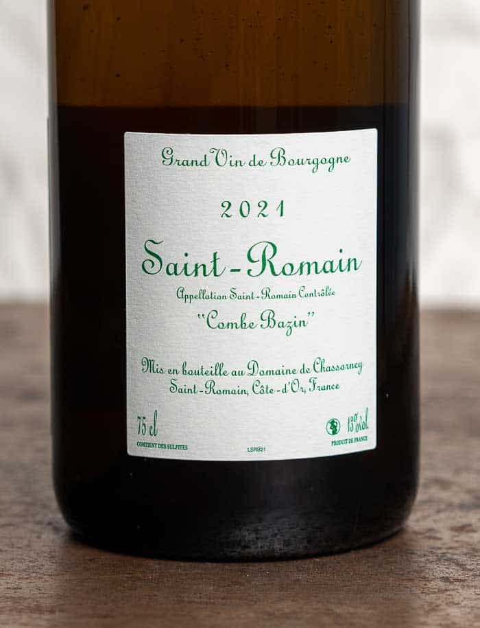 Vin blanc sec bio et naturel du grand terroir bourguignon de Saint-Romain et du climat de Combe Bazin, intense, minéral et persistant.
