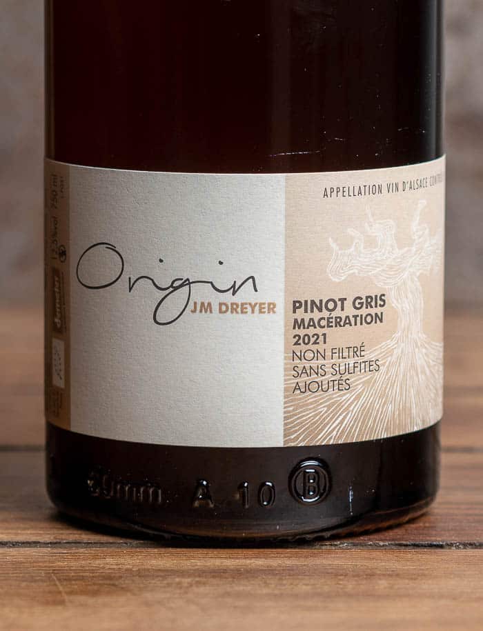 Vin blanc de macération (orange) alsacien, bio et naturel, à base de cépage pinot gris. Droit et structuré.