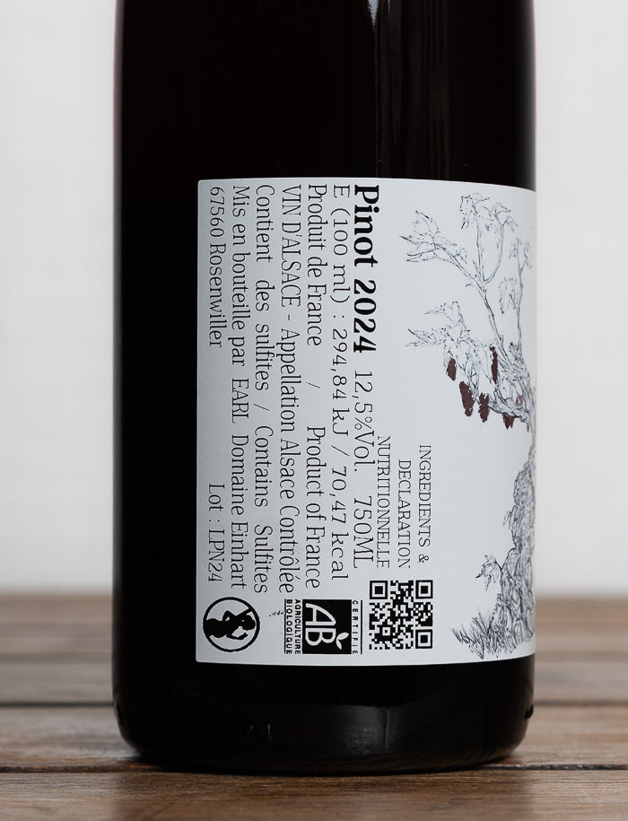 Le Domaine Einhart, installé au cœur de l’Alsace et fidèle à une viticulture biologique engagée, signe ici une cuvée rouge d’une fraîcheur désarmante, à mille lieues des rouges lourds et boisés. Ce Pinot Noir 2024, issu d’une macération égrappée d’environ deux semaines, est élevé un an en foudre sur sols argileux, sans intrants œnologiques, pour laisser parler le fruit et le terroir en toute liberté.