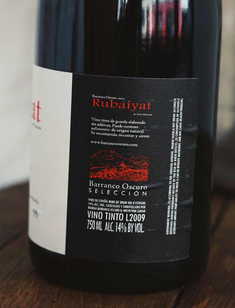 Élégamment vieilli en format magnum pendant plus de treize ans, voici un classique du domaine Barranco Oscuro. Il offre un profil corsé, tannique et sec, riche en notes matures de fruits noirs et de fruits rouges (cassis, framboise). Le cuir et la terre dominent également, accentués et sublimés par le vieillissement. Notes onctueuses, rôties et nuancées de chocolat et d’épices, et un superbe équilibre. Rubaiyat est une allusion et un hommage au poète persan Omar Khayyam, esprit universel qui écrivit au XIe siècle un cycle poétique intitulé Rubaiyat, à la gloire de l’ivresse mystique et physique. L’origine persane du cépage syrah, dont ce vin est entièrement constitué, n’a pas été pour rien dans ce choix d’intitulé. Rubaiyat provient en effet de vignes de syrah plantées en 1996 à environ 1 290 mètres d’altitude et exposées au sud sur des sols schisteux et argileux. La vendange, manuelle, soigneusement triée et éraflée, macère en cuve d’inox et fermente par levures indigènes. La vinification est naturellement contrôlée par la fraîcheur des nuits automnales en montagne. La fermentation malolactique suivie de l’élevage se déroule pendant seize mois en vieux fûts. Aucun ajout de sulfites, vin non clarifié, légèrement filtré à la mise en bouteilles.