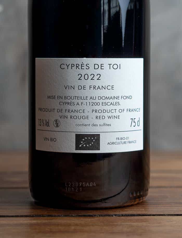 Vin rouge bio et naturel du Languedoc à base de jeunes vignes de syrah, de grenache et de carignan, fruité et buvable