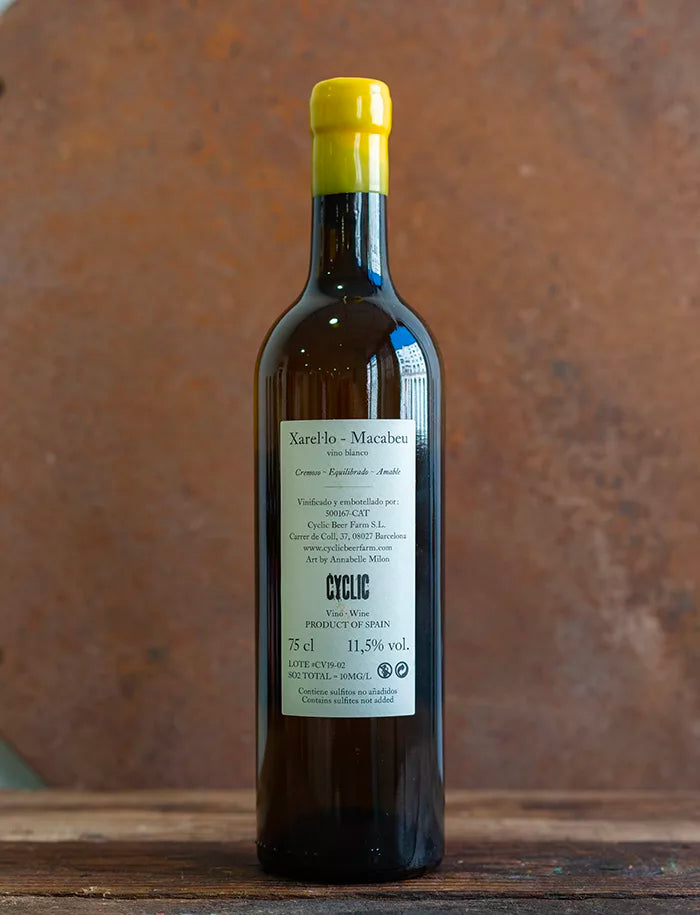 Vinification : Vendangés manuellement par l'équipe Cyclic entre le 29 août et le 17 septembre 2019, le Xarel·lo et le Macabeu sont triés, égrappés, puis macérés brièvement (2 jours pour le Xarel·lo, 1 jour pour le Macabeu). La pr, réalisée aux pieds dans grandes cuves, précèune fermentation alcoolique en cuve inox avec levures indigènes. Les cépages sont assemblés après fermentation, sans filtration ni stabilisation. La mise en bouteille a eu lieu le 6 juin 2020.