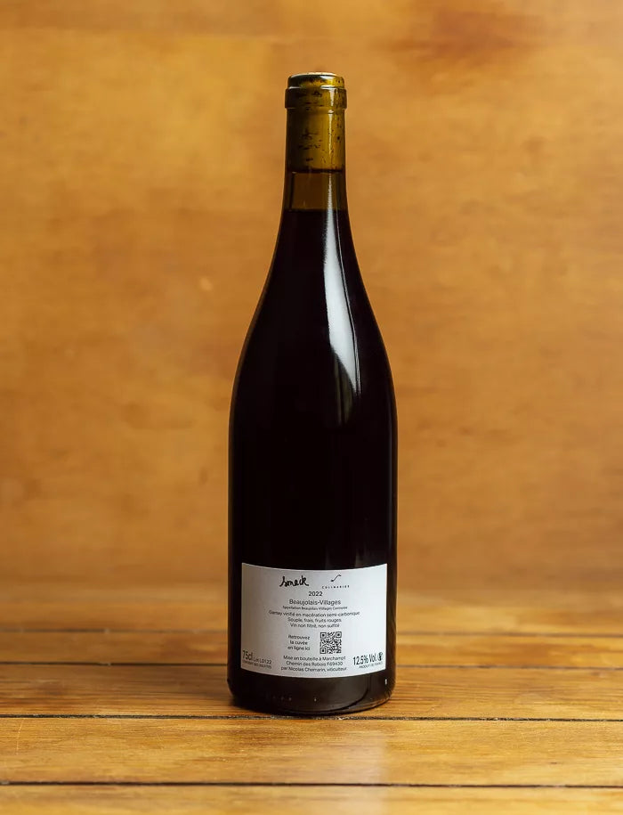 Le Beaujolais Villages Smack 2023, élaboré par Nicolas Chemarin, est une cuvée exclusive qui capture l'essence du terroir granitique du Beaujolais. 100 % Gamay, ce vin rouge AOC Beaujolais Villages se distingue par sa vivacité, son élégance et son approche moderne de la tradition. Il est vinifié selon des méthodes ancestrales, avec une macération semi-carbonique de 15 jours réalisée avec des grappes entières, suivie d’un élevage soigné de 11 mois en cuve béton.