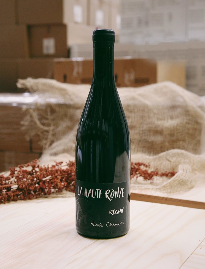 La Haute Ronze est l’une des deux parcelles que cultive Nicolas en appellation Régnié ; elle est considérée comme de très haute qualité, avec des sols argileux et profonds qui donnent des vins charpentés. Ce 100 % gamay est obtenu en macération semi-carbonique et élevé environ vingt mois (à moitié en barrique, à moitié en cuve inox). Il offre des notes de cuir, de terre, d’herbes méditerranéennes (origan, romarin), à travers ses fruits rouges.