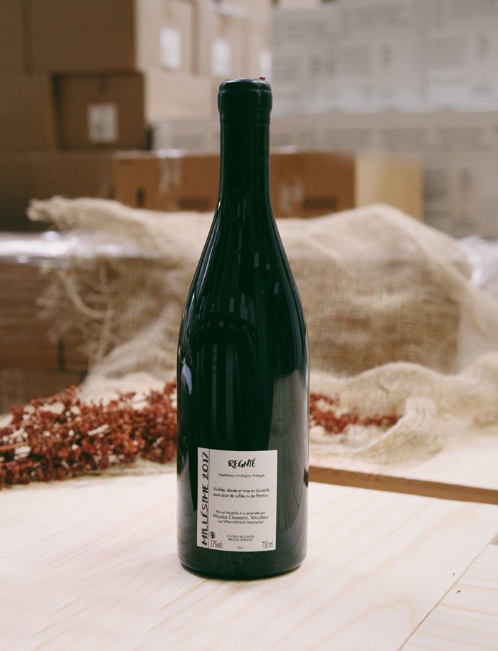 Nicolas Chemarin, surnommé « P’tit Grobis » en sa qualité d’habitant de Marchampt (Beaujolais), est la quatrième génération de vigneron sur son domaine viticole familial en appellation Beaujolais-Villages, sur une terre tout en cailloux où il cisèle des vins surprenants de profondeur et de sincérité. C’est en 2005 qu’il reprend deux hectares de vignes de son père et en 2006 qu’il signe ses premières cuvées. En 2008, il acquiert d’autres vignes et décide de se consacrer uniquement à son domaine dont le terroir, très escarpé, consiste en sols rocailleux et pauvres sur une roche granitique grise. Les vignes reposent sur le substrat rocheux à travers un sol très mince, et leurs racines plongent profondément dans la roche. Selon la configuration du sol, les vignes sont taillées en gobelet ou relevées sur échalas. Leur âge moyen est de quatre-vingts ans. L’encépagement, gamay et chardonnay, est classiquement beaujolais. Nicolas exploite aussi deux autres terroirs sur l’appellation Régnié : Les Bullats, aux sols sableux légers et filtrants, et La Haute Ronze, très proche de Morgon, dont les sols, plus profonds et argileux, donnent des vins charpentés. Les crus subissent de longues macérations (de 18 à 30 jours) avec pigeage et contrôle des températures (Nicolas travaille à froid, autour de 20 °C). L’élevage se fait partiellement en cuves de béton thermorégulées pour un tiers, les deux tiers restants passant en fûts de quatre à dix vins afin d’apporter une oxygénation mais peu ou pas de sensation boisée. Nicolas Chemarin est déjà très connu dans le milieu du nature pour ses cuvées friandes et fruitées, des vins de plaisir, et pour des crus issus de terroirs ardus et magnifiques, pourvus d’admirables et complexes notes minérales, aromatiques et épicées
