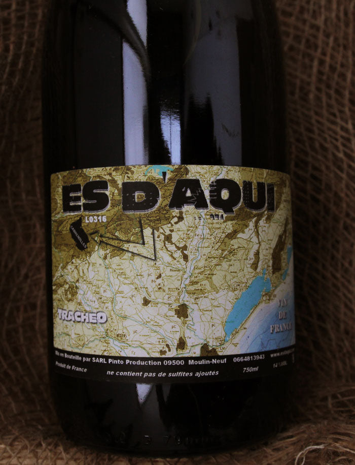 Enfant de l’Ariège, Jean-Louis Pinto a choisi de rester au pays et de faire des vins qui ressemblent à leur terroir, d’où le nom Es d’Aqui (« C’est, il est d’ici ») qu’il a donné à son négoce de vinification, situé à Moulin-Neuf, commune proche de l’Aude, entre Mirepoix et Limoux. Une région où autrefois, les vignes abondaient, jusqu’aux grosses attaques de mildiou au début du XXe siècle. Jean-Louis achète des raisins cultivés en bio par d’autres vignerons, ses amis, en qui il a toute confiance. Il ne se contente pas d’acheter le produit, il surveille la nouaison, la maturation, et fait des passages réguliers jusqu’au mois d’août, afin de connaître le raisin avant de le vendanger. Il le vinifie chez lui selon des méthodes naturelles, pratiquant de longues macérations en grappes entières. La macération de trois semaines est fréquente chez lui, ainsi que les pressurages très doux au pressoir vertical. Il a, dit-il, « beaucoup de vignes en commun » avec son ami Anthony Tortul (La Sorga, faire lien). Son aire de collecte s’étend sur tout le Languedoc, et notamment dans l’Hérault, autour d’Adissan, de Faugères et de Saint-Chinian, ainsi que dans l’Aude (Limoux) et le Tarn (Gaillac), deux terroirs qui lui sont chers. Il se trouve que les sols typiques du Languedoc – schistes, basaltes, cailloux, argilo-siliceux – lui plaisent particulièrement pour la fraîcheur qu’ils donnent aux vins. « Je fais des vins du Sud, dit-il. Je cherche surtout des terroirs qui donnent de la fraîcheur, même si les vins titrent 14 degrés. » Les cépages sont, bien entendu, typiquement languedociens : grenache, carignan, mauzac, cinsault, braucol, duras et sauvignon. Les rouges les plus puissants sont réalisés dans cinq jarres en terre cuite, qui l’aident à contrôler l’extraction et à donner à ses vins, dit-il, « un côté très cristallin ». Le sol, le lieu, on l’a compris, sont de toute première importance pour lui : encore une fois, le nom de son domaine Es d’Aqui n’a pas été choisi par hasard.