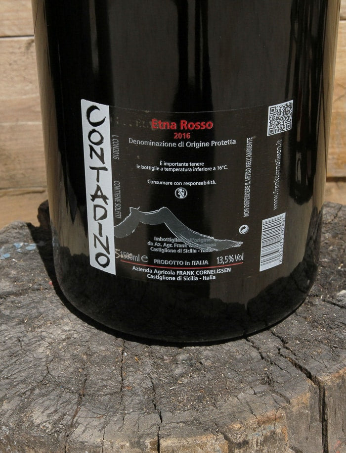 Le grand cru de Frank Cornelissen est, comme il faut s’y attendre, un vin de garde. On retrouve en lui la remarquable profondeur du cépage nerello mascalese, issu de la parcelle Barbabecchi, plantée de pieds de vignes préphylloxériques non greffés, plus que centenaires, à 910 mètres d’altitude sur les pentes de l’Etna. La macération pelliculaire se déroule pendant soixante jours sur des raisins éraflés et légèrement foulés. Pas de collage, pas de sulfites, légère filtration avant mise en bouteilles. De texture très dense, ce rouge est de nature plus minérale que fruitée (les notes de fruits sont confites : mûre, pruneau, tout en rondeur et en tannins fondus). Sa profondeur et sa puissance sont équilibrés par une grande fraîcheur. Possibilité de traces d’acidité volatile, vite envolées avec un carafage.
