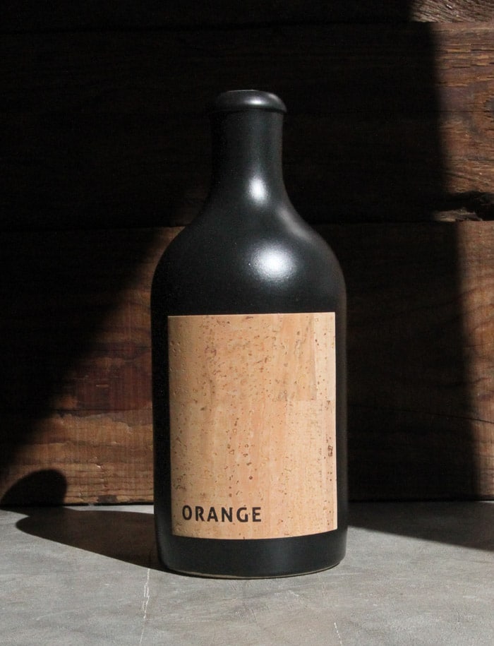 Cette cuvée Orange à la robe vieil or spectaculaire et aux tannins souples et enchanteurs est issue à 100 % de petit manseng, cépage emblématique du Jurançon. Elle est issue de vendanges manuelles effectuées durant la seconde quinzaine de septembre. La viticulture, comme la vinification, se fait sans ajout d’intrants chimiques ni de sulfites. Orange est issu d’une macération de trois semaines en jarre de terre cuite, ce qui lui donne cette belle robe fauve, ce nez puissant et ces tannins souples et fondants. Un véritable trésor à garder jusqu’à dix ans en cave (encore faut-il y parvenir). Possibilité d’accords gustatifs quasi infinis (tout va avec, y compris les denrées les plus improbables). Un orange dense et puissant, d’une étonnante complexité, et qui n’oublie pas en même temps d’être fin et caressant.
