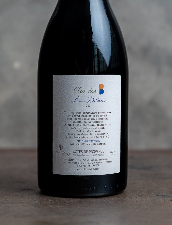 Vin bio et nature du terroir provençal de Saint-Tropez, produit par le Clos des B de Jean-Jacques Branger et Gwendolyn Berger. Frais, vif, rond, gourmand, soyeux. Sans intrants ni sulfites ajoutés.