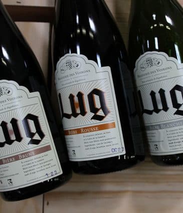 C’est après la fermeture du restaurant que Christophe coiffe la casquette de brasseur et reprend la microbrasserie des Voirons. Il revoit entièrement la copie : l’objectif est une bière vivante, bio (label Nature & Progrès), fine et typée, qui sera baptisée Lug en hommage à la ville de Lucinges. L’eau est celle de la source des Voirons, aux abords du village, issue de la même nappe phréatique que celle d’Évian. Les houblons et les orges, en provenance de Belgique et d’Allemagne, sont 100 % bio, et nos brasseurs savent y ajouter une goutte de folie et soignent le goût dans la pleine logique de leur approche culinaire. Les cuvées sont au nombre de cinq : blanche, blonde, brune, rousse et spéciale gentiane. Toujours équilibrées, à associer avec un bon repas, ce sont des bières d’orfèvre et de cuisinier. Toutes de haute fermentation avec refermentation en bouteille, elles sont non filtrées et non pasteurisées, avec un taux d’alcool de 6 degrés.
