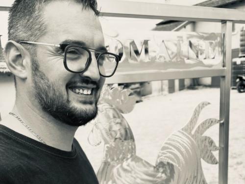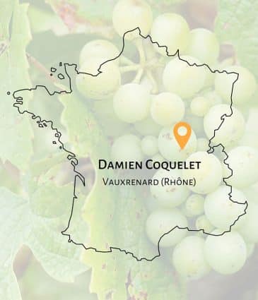 Damien Coquelet représente la nouvelle génération du beaujolais en mode bio et naturel, continuant de tracer le sillon creusé par les pionniers Jules Chauvet et Marcel Lapierre, puis par ses mentors Jean Foillard et Georges Descombes. Ce dernier, qui n’est autre que son beau-père, l’initie au travail du chai dès l’âge de dix ans, et Damien n’a que dix-neuf ans quand il réalise son premier millésime en 2007. Cest à partir de 2009 qu’il se consacre à ses propres cuvées. Entre-temps, il passe un BEP viti-œnologie, travaille quelque temps chez Guy Julien à Beaumes-de-Venise, puis au château des Jacques, en Beaujolais.