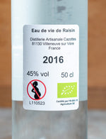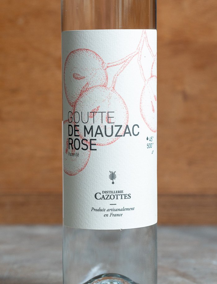 Eau-de-vie biologique et naturelle de raisin de cépage mauzac rose de la Distillerie Cazottes, entièrement élaborée par Laurent Cazottes dans le Gaillacois (Tarn) à partir des fruits de sa propriété.