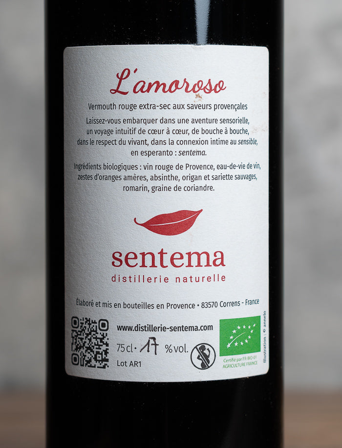 Amoroso Rouge n’a rien à voir avec les vermouths sirupeux de tradition industrielle. Cette création audacieuse de la Distillerie Sentema, nichée dans les Alpes-Maritimes, bouscule les codes du vermouth rouge en proposant une version séche, complexe et végétale, totalement ancrée dans le terroir provençal.