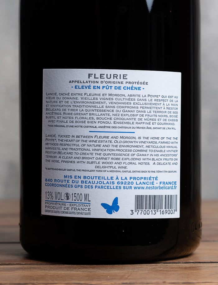 Installé à Lancié, un village en appellation Beaujolais et Beaujolais-Villages niché entre les crus Fleurie, Morgon et Moulin-à-Vent (limitrophes), le Domaine Nestor Bélicard perpétue un héritage viticole familial vieux de plus de trois siècles. Sur 5,5 hectares conduits en agriculture biologique, Nestor Bélicard élabore des vins naturels d'appellation, sans intrants ni sulfites ajoutés, dans le respect des méthodes traditionnelles. Gamay de caractère, terroirs vivants, vinifications en cuves bois centenaires : un retour aux sources vibrant, pour des cuvées pleines de fruit, d’équilibre et d’authenticité.