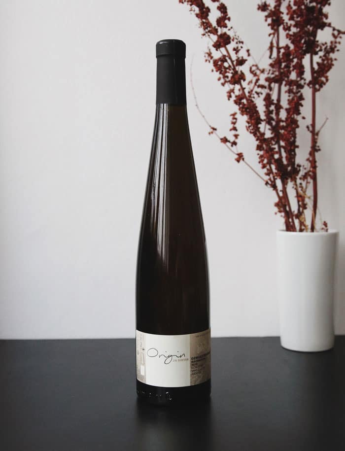 Parfumé, puissant, somptueux, déroutant, addictif, structuré en couches et d’une surprenante complexité, Gewurztraminer Origin est le gewurztraminer que vous n’attendiez plus, avec une aromatique surpuissante, sans le sucre couramment associé à ce cépage. Tous les sucres ont été mangés, reste une extraordinaire richesse d’arômes, nue et sans fard. Notes de mangue, de litchi, d’ylang-ylang, le bouquet de fleurs et de fruits exotiques est bien là, sublimé par une trame sèche et droite. Ce vin appelle le foie gras à grands cris, avec ou sans truffe, mais il peut être bu avec tout, des produits de la mer à ceux de la terre.