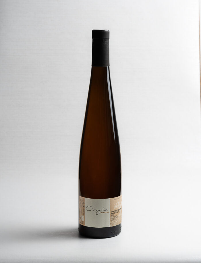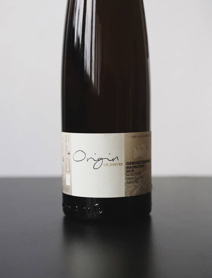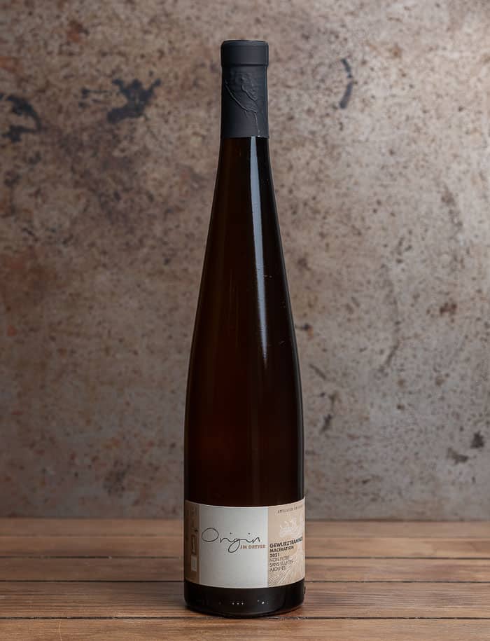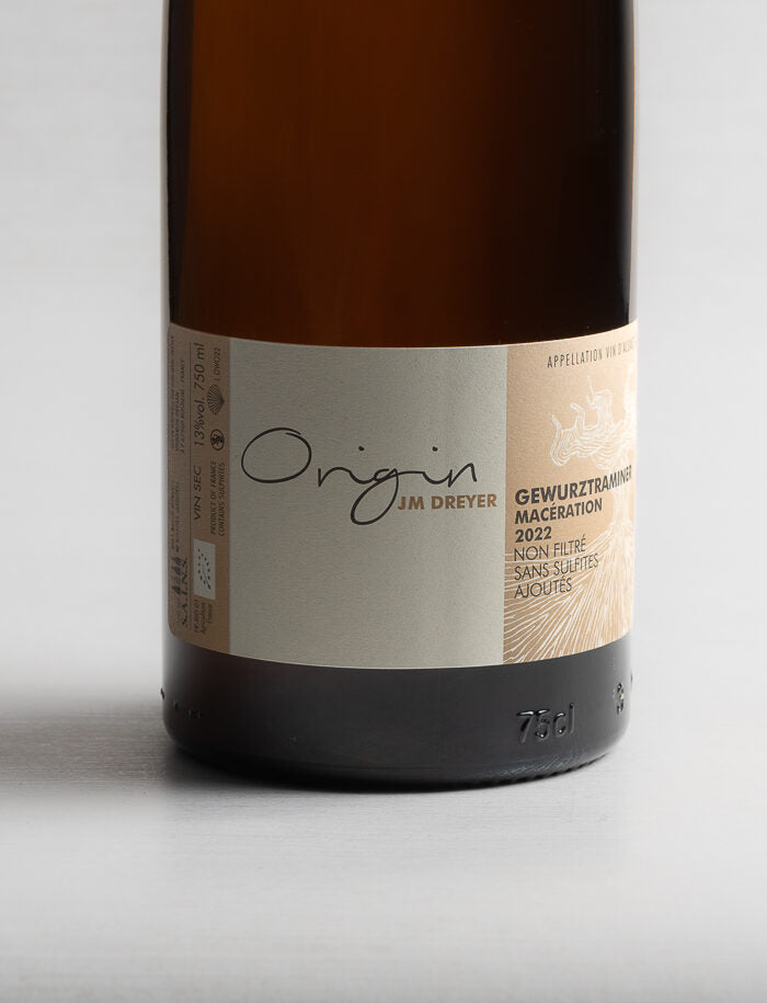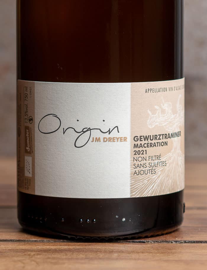 Gewurztraminer Origin de Jean-Marc Dreyer est un vin blanc sec alsacien de macération (vin orange) biologique (label AB), biodynamique et nature, sans ajout de sulfites. La gamme Origin de Jean-Marc Dreyer est constituée de cuvées monocépage autour de six cépages alsaciens (sylvaner, auxerrois, pinot gris, gewurztraminer, riesling et muscat), en macération pelliculaire avec une touche d’oxydation ménagée et celle-ci donne une nature pluridimensionnelle au cépage gewurztraminer, qui prouve ainsi qu’il n’avait jamais dit son dernier mot.