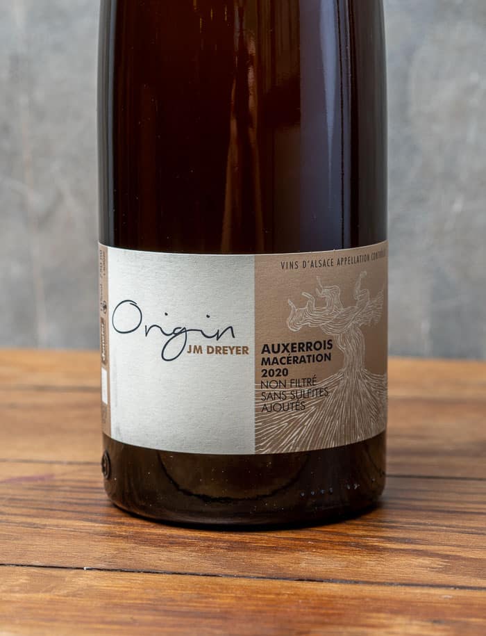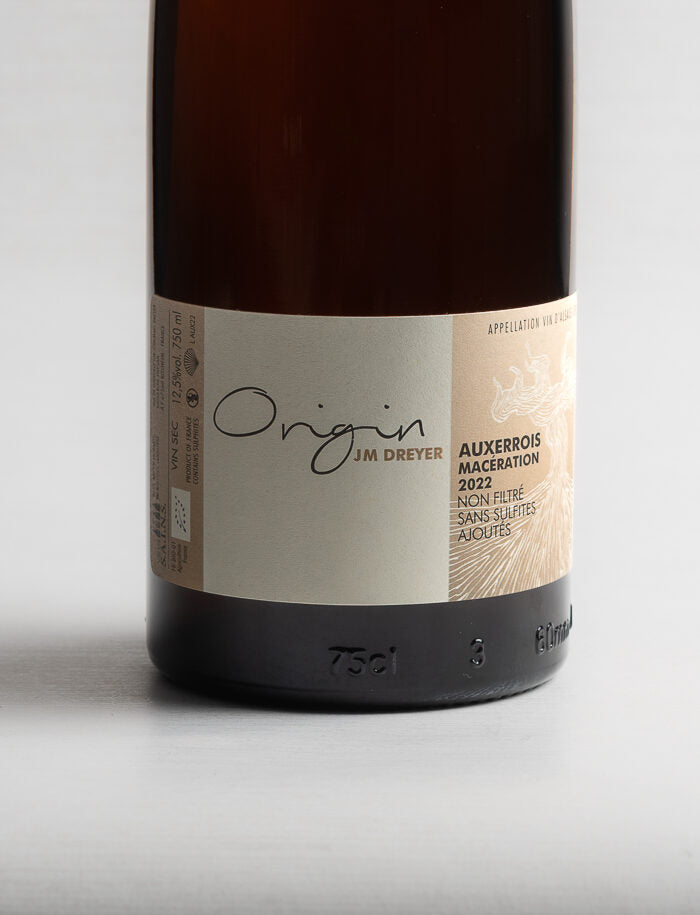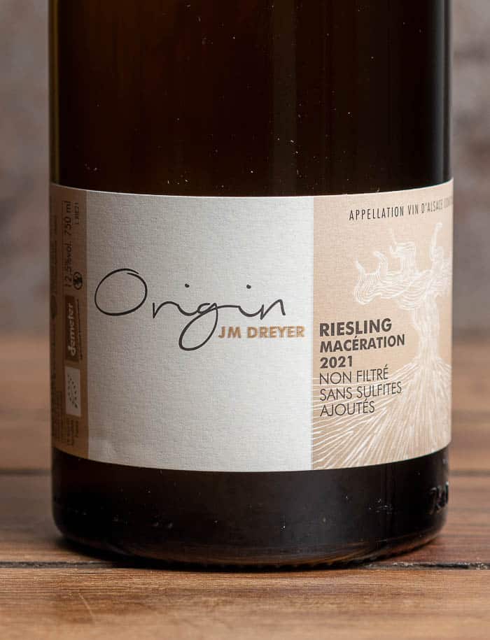 Riesling Origin de Jean-Marc Dreyer est un vin blanc sec alsacien de macération (vin orange) biologique (label AB), biodynamique et nature, sans ajout de sulfites. La gamme Origin de Jean-Marc Dreyer est constituée de cuvées monocépage autour de six cépages alsaciens (sylvaner, auxerrois, pinot gris, gewurztraminer, riesling et muscat), en macération pelliculaire avec une touche d’oxydation ménagée. La découverte de chaque Origin est toujours une révélation.