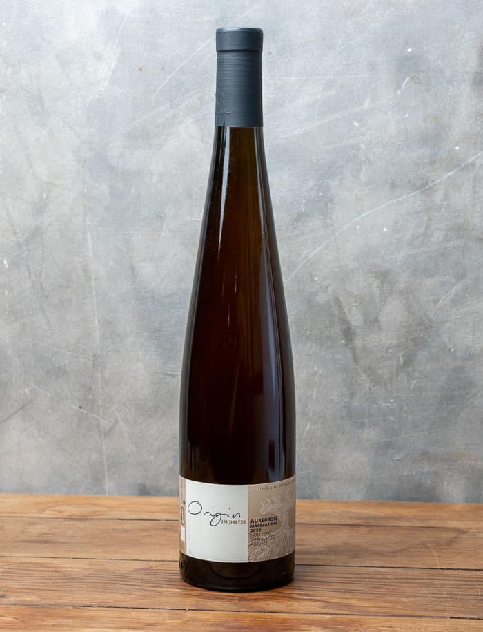 Auxerrois Origin de Jean-Marc Dreyer est un vin blanc sec alsacien de macération (vin orange) biologique (label AB), biodynamique et nature, sans sulfites ajoutés. La gamme Origin de Jean-Marc Dreyer est constituée de cuvées monocépage autour de six cépages alsaciens (sylvaner, auxerrois, pinot gris, gewurztraminer, riesling et muscat), sublimés en macération pelliculaire avec une touche d’oxydation ménagée. La découverte de chaque cuvée Origin est toujours une belle surprise.