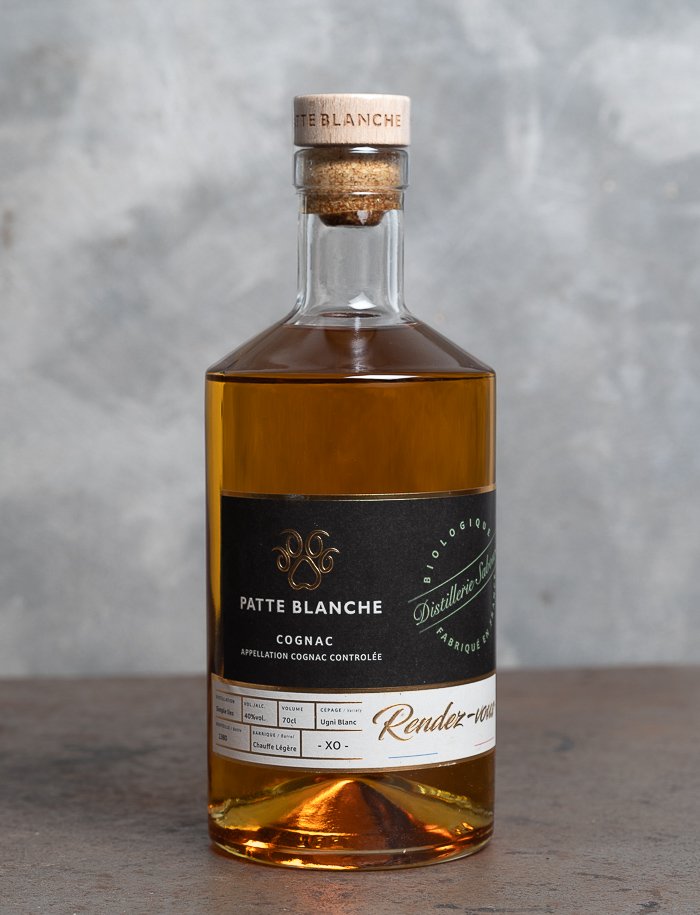 Rendez-vous XO est un cognac vieux, biologique et artisanal, de la marque Patte blanche. Classé VSOP et AOC Cognac, il est distillé et vieilli à la distillerie Sabourin, à Arthenac (Charente-Maritime), fondée par le grand-père de l’un des deux créateurs de Patte blanche. L’objectif de cette marque est de façonner des cognacs de nouvelle génération, sans lourdeur, respectueux de l’environnement et aussi adaptés à la dégustation en solo qu’à la mixologie. La mention XO (Extra Old) signifie qu’il a été vieilli au moins dix ans.
