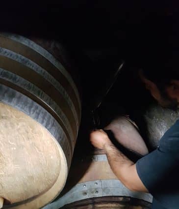 Comme son nom l’indique, Je t’ai dans la peau est une affaire d’épiderme. De peau de raisin, bien sûr, puisqu’il s’agit d’un blanc de macération, expérience réalisée par Nicolas avec diverses nuances depuis 2009 pour obtenir des vins à la personnalité marquée. L’objectif n’est pas d’obtenir des vins orange exubérants à l’italienne ou à la méridionale, mais des macérations maîtrisées avec du fruit et de la profondeur. La vendange provient de la même parcelle que celle de P’tit Grobis blanc : tout chardonnay bien entendu, sols granitiques caillouteux. Le millésime 2017 est réalisé en macération pure. Celle-ci est courte : de cinq à sept jours. L’élevage est de trois ans en fûts. Cet orange-ci offre une belle couleur vieil or et des notes finement oxydatives, noix et noisette, débouchant sur une palette fruitée exotique. Superbe équilibre à savourer.