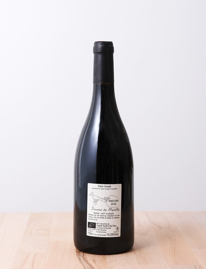Le fruit est dense, net et précis, les tannins sont fins, onctueux et pleins de fraîcheur, et la minéralité est subtile. Même l’intensité d’une syrah du Rhône laisse apparaître ce « goût d’eau », cette fluidité désaltérante qui est la marque que Chrystelle Vareille et Paul Estève désirent donner à leurs vins. Avec ses notes florales et épicées, sa tension minérale sur une texture ample et une sapidité intense, ce vin n’est pas sans rappeler les vins de qvevri géorgiens élevés en terre cuite. Madloba (« merci » en géorgien), en AOP Saint-Joseph, est un cent pour cent syrah. Les vignes, âgées de bientôt quarante ans, sont plantées à 350 mètres d’altitude, sur une parcelle en coteau aux sols de granites et de micas noirs. La vendange fermente en tinajas, jarres de terre cuite non enterrées, et après pressurage le vin retourne en tinaja pour un élevage d’un an. Ce mode d’élevage favorise la texture du vin, adoucit les tannins et développe le fruit. Tout-terrain quant aux accords, Madloba rouge peut tout se permettre.