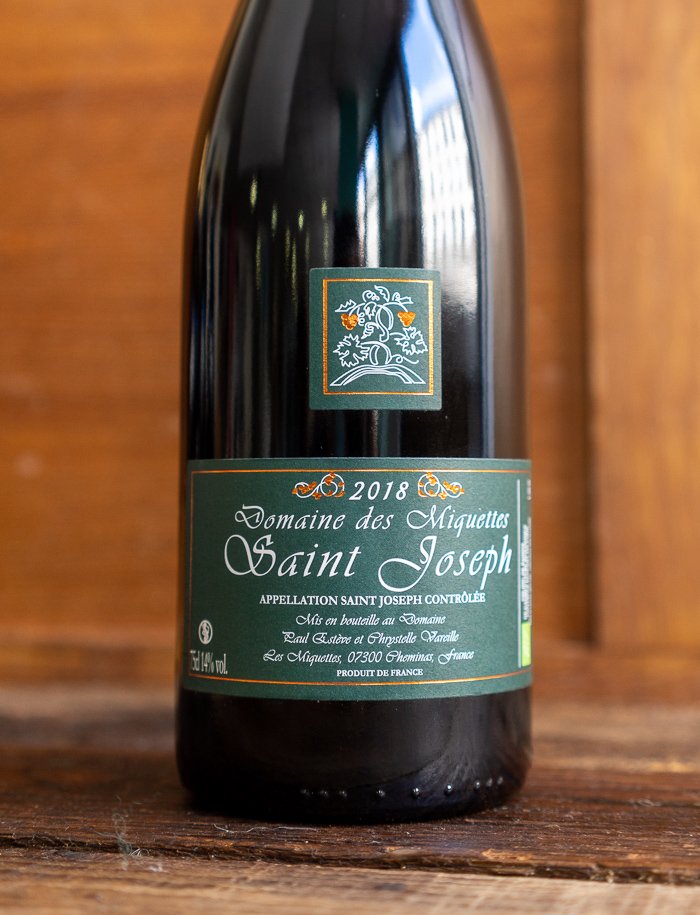 Le domaine des Miquettes associe, avec beaucoup de talent, le terroir et les traditions viticoles du Rhône et celles de la Géorgie, dont la viticulture est un modèle pour Paul Estève et Chrystelle Vareille, créateurs du domaine. Celui-ci, situé en Ardèche, se trouve au sud de l’appellation Saint-Joseph. Paul a fait ses classes auprès de René-Jean Dard et François Ribo, deux grandes figures du vin naturel en vallée du Rhône. Avec Chrystelle, il commence par récupérer la ferme de la famille de Paul avec deux ares de vigne, puis en 2004 la totalité du domaine, lequel compte à présent 4,3 hectares. Les cépages blancs sont situés autour de la maison, les cépages rouges sont plantés sur coteaux escarpés, entre 300 et 450 mètres d’altitude. Les parcelles reposent sur un socle de granit avec des sols légers : granits à micas noirs, schistes et gneiss. Tout est cultivé en bio (Écocert) avec pratiques biodynamiques. Les vignes sont soignées et fortifiées à l’aide de décoctions de plantes et d’argile. Les sols sont travaillés au cheval ou au treuil et à la pioche. Aucun intrant chimique n’est ajouté au travail viticole. Les vendanges sont entièrement manuelles.