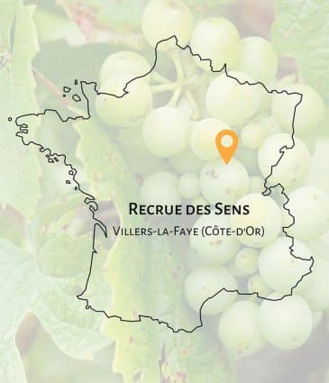 En appellation Hautes Côtes de Nuits, dans le canton de Nuits-Saint-Georges, Villers-la-Faye est un village où Balzac séjourna plusieurs fois et qu’il décrivit dans son roman Les Paysans sous le nom de Ville-aux-Fayes. C’est là, précisément au hameau de Messanges, que les parents de Yann Durieux ont trois hectares de vigne. Leur fils Yann fait ses classes de vigneron non loin de là, au Prieuré-Roch, sur les appellations Gevrey-Chambertin et Nuits-Saint-Georges — un domaine où les vins sont réalisés sans aucun produit de synthèse, à la vigne comme au chai, sans soufre ajouté et selon les principes de la biodynamie. Pendant dix ans, Yann peaufine son talent et s’imprègne de cette philosophie viticole. C’est tout naturellement qu’il les applique à la vigne familiale quand il la reprend en 2010, créant son propre domaine qu’il baptise « Recrue des Sens ».