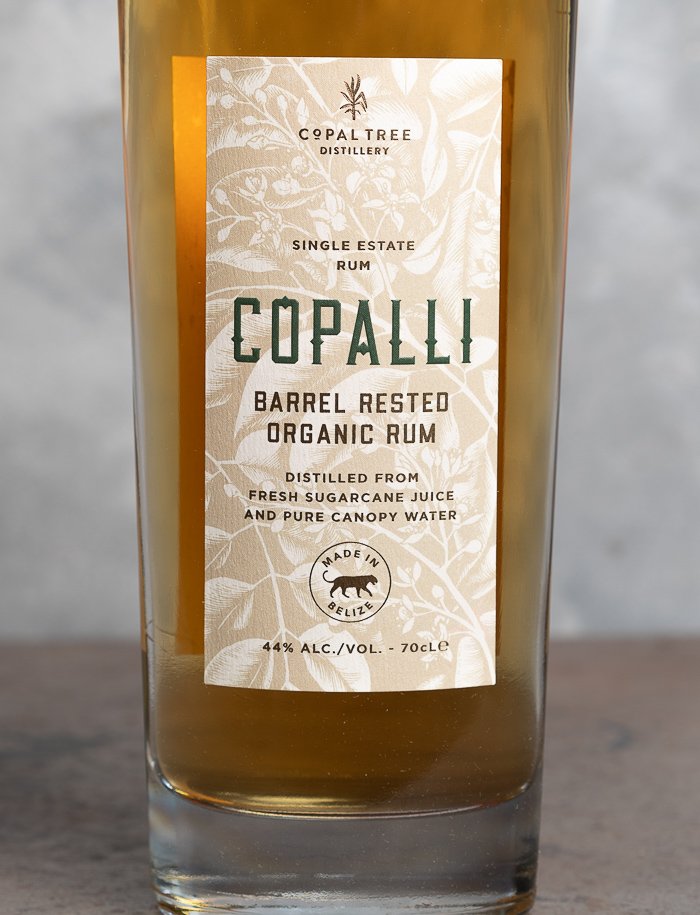 Après une double distillation en pot still (alambic de cuivre de type charentais), ce rhum pur jus de canne (par opposition aux rhums de mélasse, moins rares), entièrement biologique, est vieilli huit mois en fûts de bourbon. Quatre ingrédients uniquement composent Copalli Barrel-Rested Rum : la canne à sucre bio, l’eau pure de la canopée, les levures locales et le bois de la barrique avec ses arômes de bourbon.