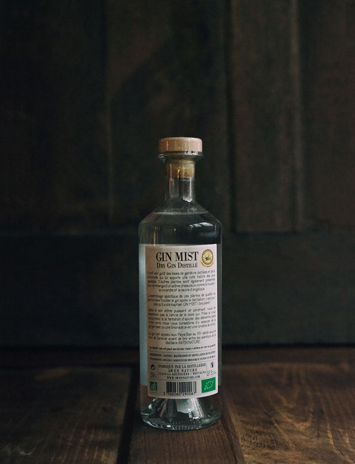 Ce gin biologique, qui a reçu la médaille d’or de la Spirits selection du concours mondial de Bruxelles en 2016, offre des notes franches et fraîches de baies de genièvre distillées, accentuées par la citronnelle. Entrent aussi dans l’assemblage houblon, coriandre et racine d’angélique, le tout donne un gin trouble après distillation, d’où son nom (mist, « brouillard »). Une recette quasi alchimique dont l’arôme puissant et pénétrant donne envie de la déguster pure, mais le gin tonic lui va aussi très bien — gin, tonic water, rondelle de citron vert, glaçons, et pourquoi pas un gin fizz simplifié ? Une part de gin, trois parts de limonade artisanale, quelques glaçons, un bon coup de shaker, et voilà !