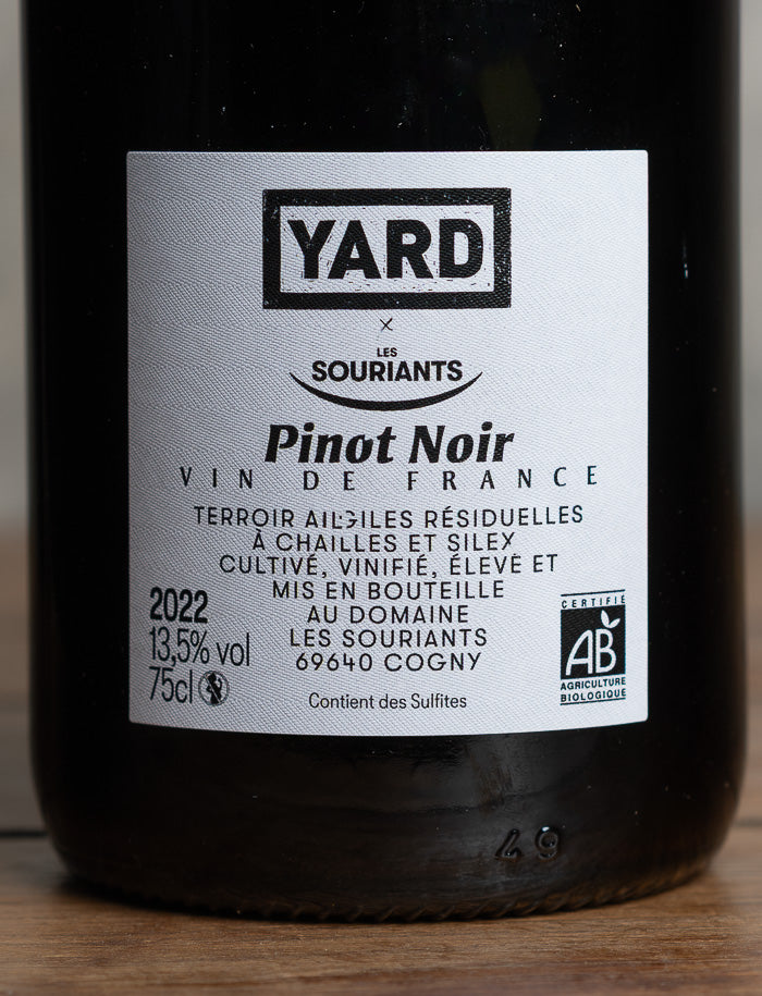 Les Souriants nous livrent ici une interprétation parcellaire du Pinot Noir avec leur Cuvée YARD Champs Élysées 2022, issue d’un terroir granitique singulier du Beaujolais. Ce vin naturel, certifié en agriculture biologique, explore la finesse et la profondeur de ce cépage souvent méconnu dans la région, où il trouve pourtant une superbe résonance sur ces sols pauvres et minéraux.