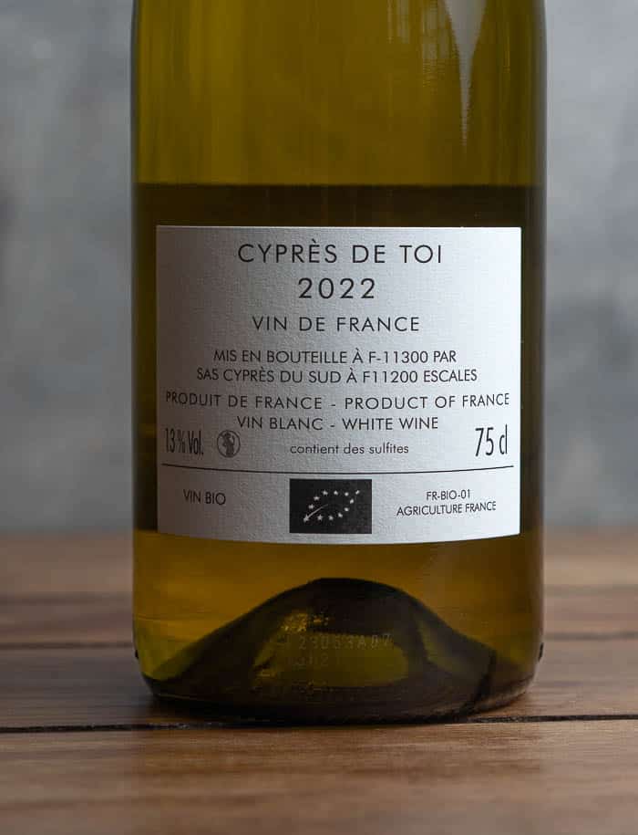 Vin blanc sec bio et naturel du Languedoc à base de chardonnay, frais et équilibré.