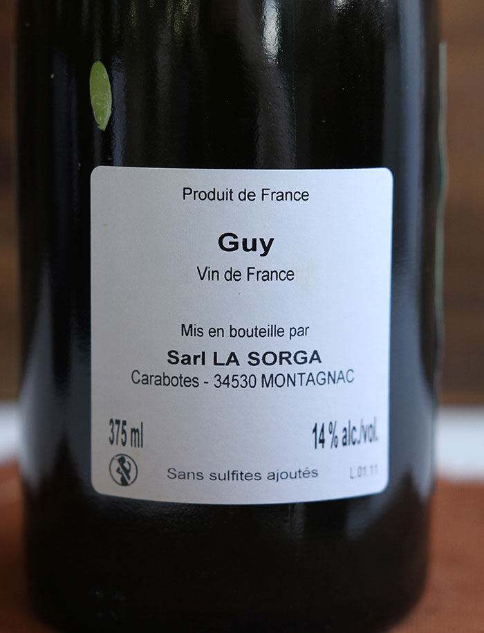 La cuvée Guy è ottenuta da un assemblaggio di due vitigni del sud che crescono sul duro calcare urgoniano di Puéchabon (Hérault): vermentino (chiamato rolle in Francia), all'ottanta per cento, da viti di venticinque anni, e viognier, al venti per cento, da viti di venticinque anni. Questi due vitigni macerano insieme a grappoli interi per due settimane. Successivamente, solo il cuore della pressa viene selezionato prima di invecchiare in vecchie botti, senza rabbocchi, per oltre nove anni. Un vino dalla forte personalità e dalle note delicatamente ossidative, che presenta un naso di bergamotto, melone candito e noce fresca. Al palato è ampio, privo di zuccheri residui o sentori legnosi, potente e di grande complessità. Il finale è vivace. Questo vino resiste molto bene all'aria (oltre sei mesi) e offre una struttura solida come la roccia.