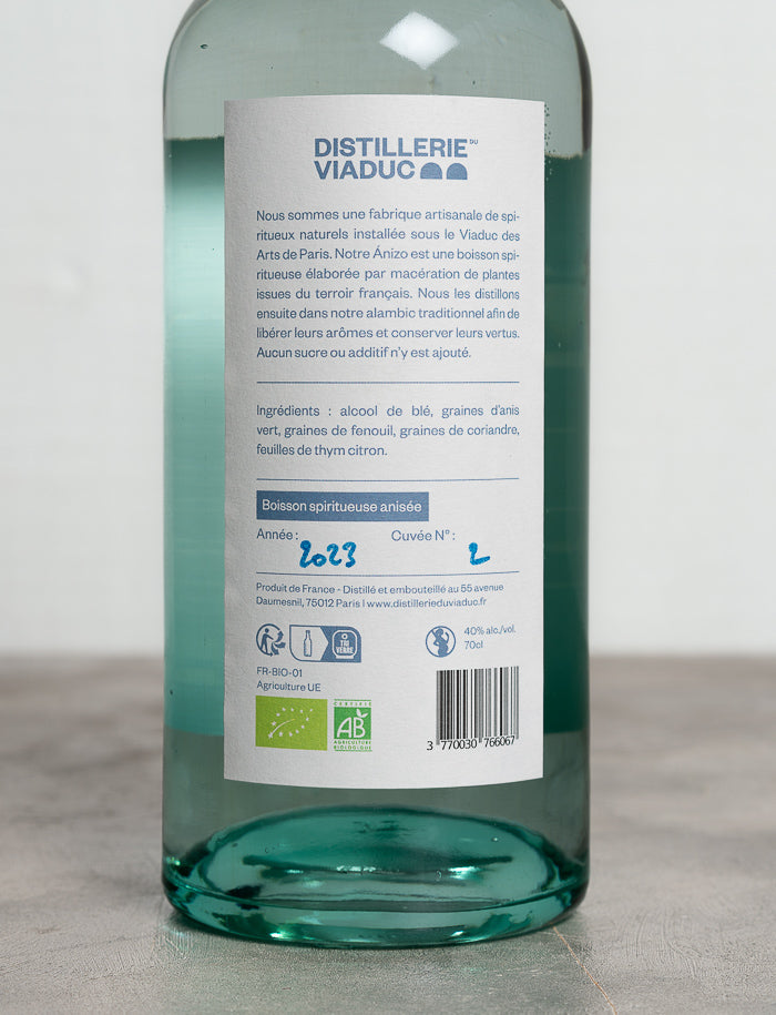 Ánizo est une interprétation moderne, fine et sans compromis du spiritueux anisé, née au cœur de l’Île-de-France, dans les ateliers de la Distillerie du Viaduc. Élaboré exclusivement à partir de plantes et aromates biologiques d’origine française, ce spiritueux est inspiré des grandes traditions méditerranéennes, mais avec un regard neuf, franc et engagé.