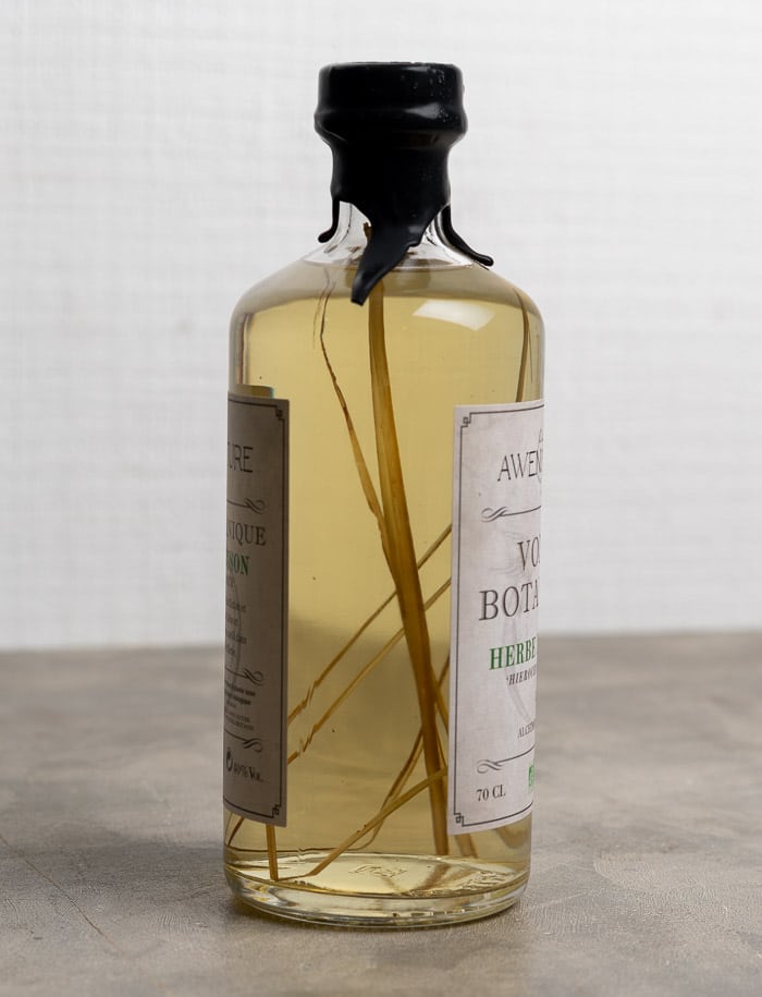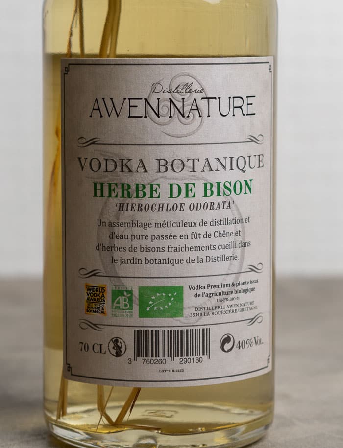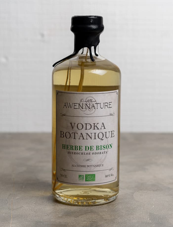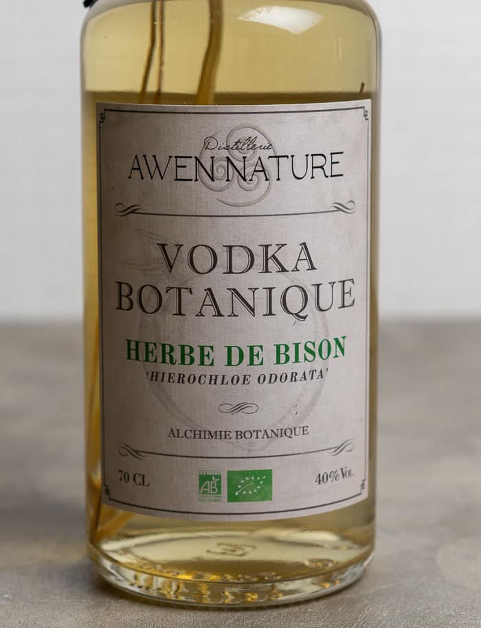 Vodka aromatizzata con erba di bisonte (Hierochloe odorata) coltivata nel giardino della distilleria.