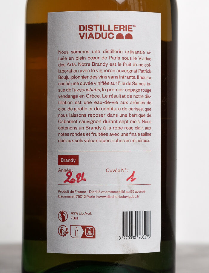 Il Brandy della Distillerie du Viaduc è un distillato raffinato, prodotto con uve del vitigno Avgoustatis e invecchiato in botti. Note di ciliegia candita, prugna e vaniglia si fondono in un gusto corposo e persistente. Ideale come digestivo o in un cocktail.