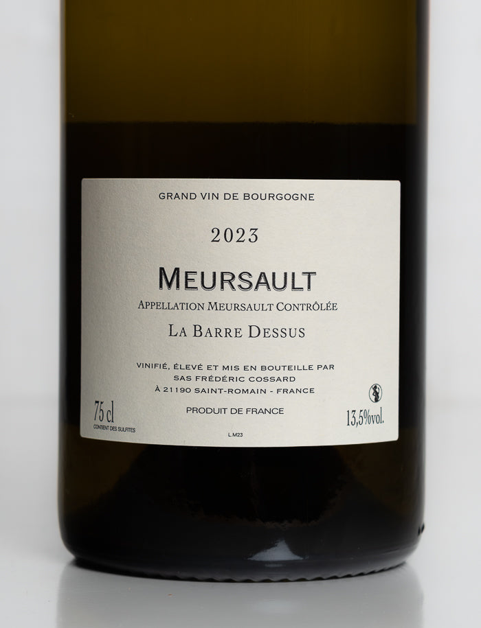 Frédéric Cossard, figure radicale du vin naturel en Bourgogne, livre ici un Meursault d’altitude, à la fois ample, riche et profondément vivant. Issu de la parcelle renommée La Barre Dessus, en haut de coteau, ce Chardonnay sans label mais cultivé en bio, prend vie sur sols argilo-calcaires pour une expression minérale et structurée.