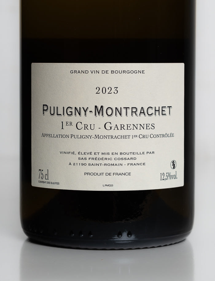 Située entre 230 et 250 mètres d'altitude, la parcelle Les Garennes, exposée sud-est, repose sur un sol brun marneux et argilo-calcaire, parfois directement sur la roche. C’est ici, sur l’un des premiers crus les plus racés de Puligny, que Frédéric Cossard élabore un Chardonnay de très haute tenue, sans artifices et sans label, mais toujours dans une démarche naturelle exemplaire.