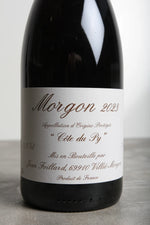 Morgon Côte du Py 2023 est la cuvée phare du domaine, issue du célèbre coteau volcanique qui domine le village. Ce terroir, riche en schistes et manganèse, donne un vin intense, structuré, et profondément ancré. En 2023, la cuvée allie puissance, fraîcheur et finesse avec une énergie remarquable.