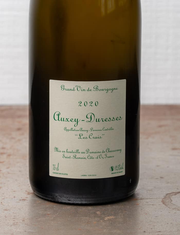 Vino bianco secco della Borgogna della denominazione Auxey-Duresses, fruttato, complesso e maturo.