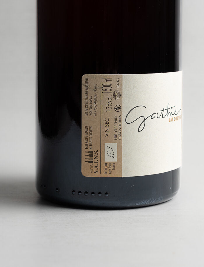 Vino bianco macerato alsaziano, biologico e naturale, assemblato da Jean-Marc Dreyer da sei cuvée macerate di vitigni bianchi alsaziani. Sorprendente, saporito e complesso.
