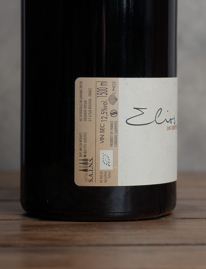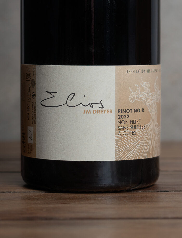 Il Magnum Elios 2022 di Jean-Marc Dreyer, un vino rosso biologico con AOP Alsazia, rivela un Pinot Nero delicato e floreale, con note di ciliegia e spezie. Ideale con carni bianche e salumi, offre una bella freschezza e una grande eleganza.