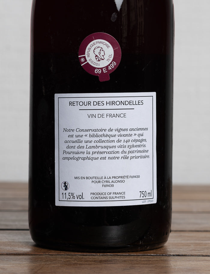 La Tribu Alonso, collectif passionné et affranchi des carcans traditionnels, cultive ses vignes avec une philosophie profondément respectueuse du vivant. Une démarche sincère, intuitive, et connectée au rythme des saisons. Les vignes sont bichonnées à la main, sans intrants de synthèse, dans un esprit de soin et d’écoute du végétal. En cave, même approche minimale : "Les Hirondelles" est une cuvée 100% jus de goutte, née du seul écoulement naturel du raisin, sans pressurage. Ce choix radical donne naissance à un vin d’une fluidité remarquable, où chaque gorgée semble couler de source, avec l’élégance d’un vin non contraint.