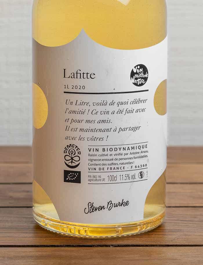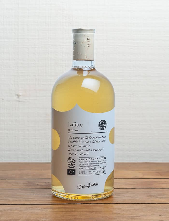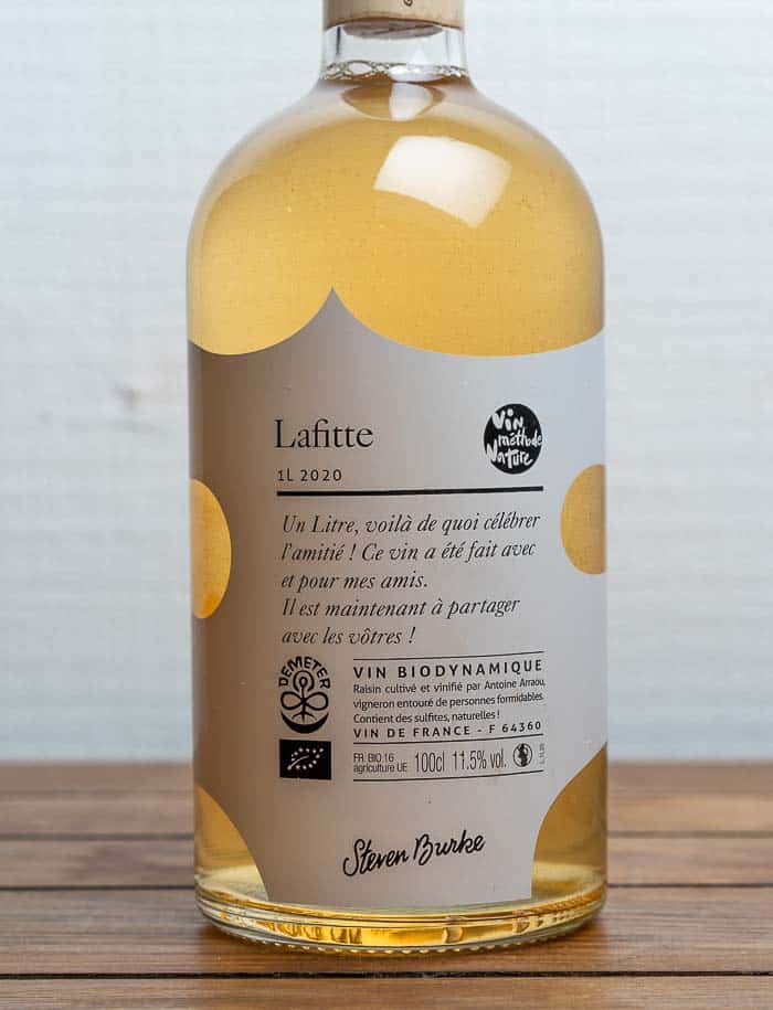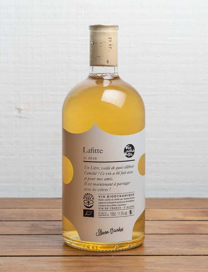 Vino bianco secco biologico e naturale della regione Jurançon, perfetto per tutte le occasioni e confezionato comodamente nella bottiglia da un litro per una cena raffinata.