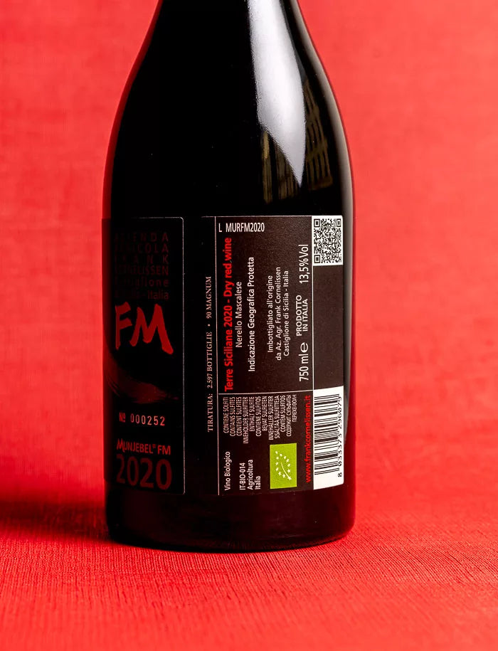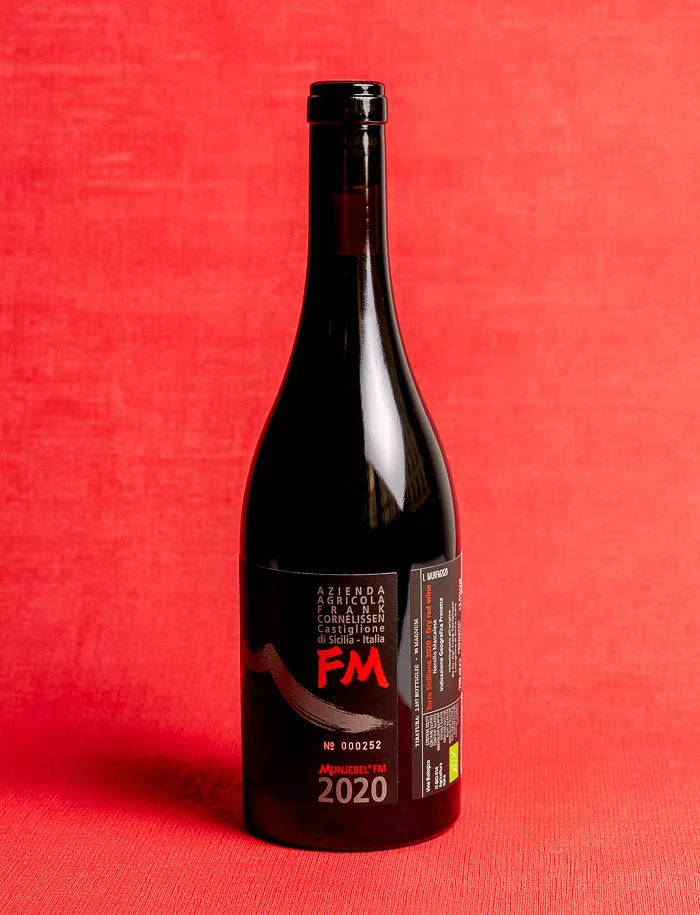 Vino rosso siciliano biologico, biodinamico e naturale (DOP-AOP Etna Rosso e IGP Terre Siciliane), prodotto da Frank Cornelissen da uve Nerello Mascalese coltivate nel terreno Sottana (superiore) della contrada Feudo di Mezzo. Rotondo, adattabile e quasi borgognone.