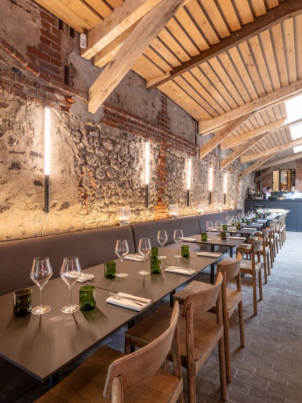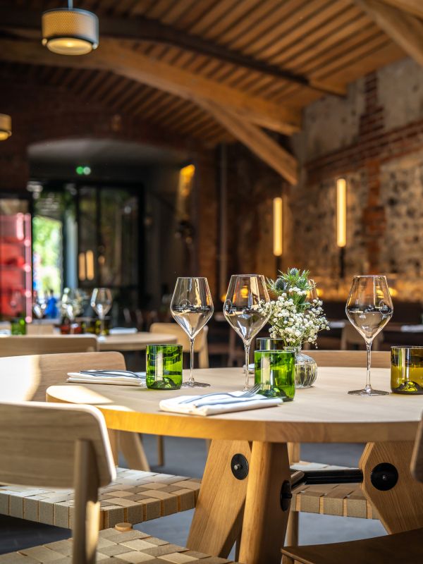 Ancien atelier de ferronnerie, le lieu a été entièrement réinventé dans le respect de son âme d’origine : briques, pierres, ardoises, poutres et verreries dialoguent aujourd’hui avec des lignes contemporaines et des matériaux nobles.