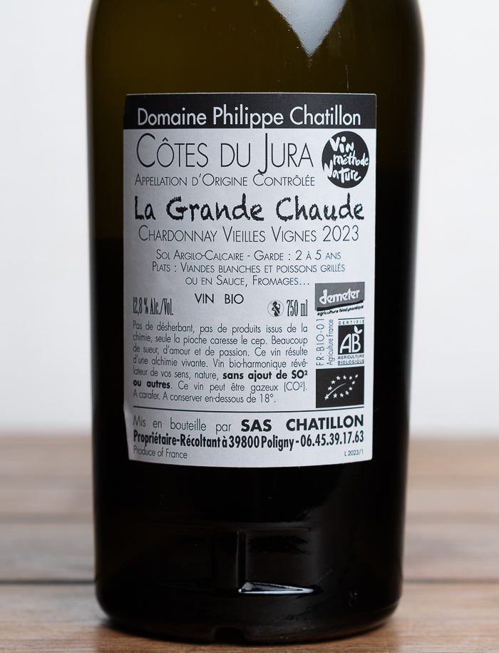 Avec La Grande Chaude 2023, Philippe Chatillon nous livre une cuvée d’auteur, où le Chardonnay, cépage noble du Jura, trouve une expression ciselée et profondément minérale. Cette cuvée certifiée en agriculture biologique, classée en AOC Côtes du Jura, est issue d’un terroir rare et complexe : des marnes rouges du Lias enrichies d’un banc de dolomie – une roche calcaire tendre – qui structure le sommet de la parcelle. Cette composition unique, située à Passenans, confère au vin une tension naturelle et une grande précision aromatique.