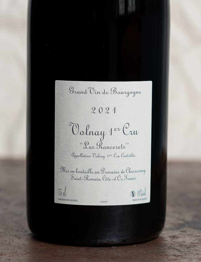 Vin rouge bio et nature de Bourgogne, issu du terroir de Volnay et du climat Les Roncerets, tout en fruit rouges et en complexité. Vin de garde.